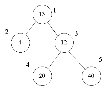 设有一棵二叉树(如图,其中圈中的数字表示结点中居民的人口,圈边上数字表示结点编号。现在要求在某个结点上建立一个医院,使所有居民所走的路程之和为最小,同时约定,相邻结点之间的距离为1。就本图而言,若医院建在1处,则距离和=4+12+220+240=136;若医院建在3处,则距离和=4*2+13+20+40=81……